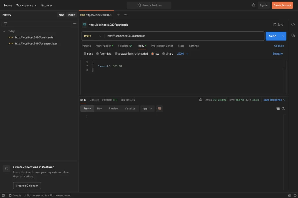 CashCards is a RESTful API built with Java and Spring Boot that enables secure management of cash cards, providing full CRUD functionality and role-based access control.